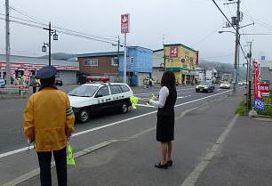町内会ごとに、啓発場所が定められていますので、国道から離れた場所にお住まいの皆さんは、わざわざ国道まで出てきて、旗を振ることになります。