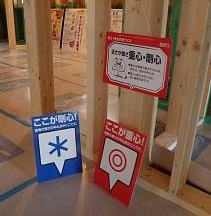 これは、どんな材料を使用して、どんな住宅を建てているのかを皆さんにご紹介するものです。出来上がってからでは見ることのできない柱や梁の仕上がりを目で確認することが出来ます。地震に強い住宅づくりは、現在、最も求められていることだと思いますが、この構造を見れば納得して頂けること、間違いなしです。梁の材木の用い方や、筋交いの材木の太さなど、ふむふむとうなづくことが沢山ありました。