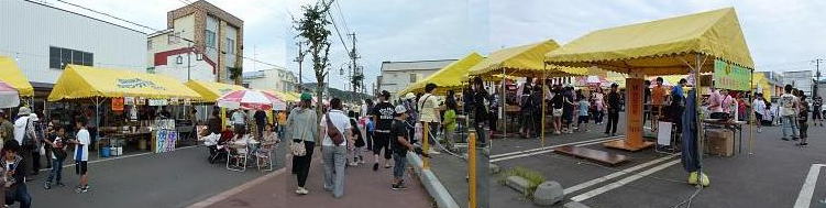 この時期、肌寒くなることもあり得ますが、今年は暖かい中での開催となり、半袖の人も見受けられました。子供達はキッズ広場でゲームを楽しみ、大人達は交友に忙しかったようです。出店はいつものように様々。そば、うどん、焼き鳥、フランクフルト、ジンギスカン…などなど。近隣の郡部からの出店もあり、値段も色々でした。