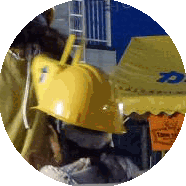 黄色いヘルメットの先端にキリンの顔が付いているのです。