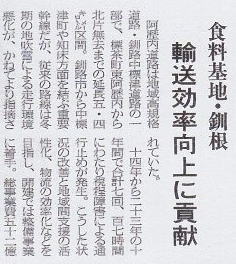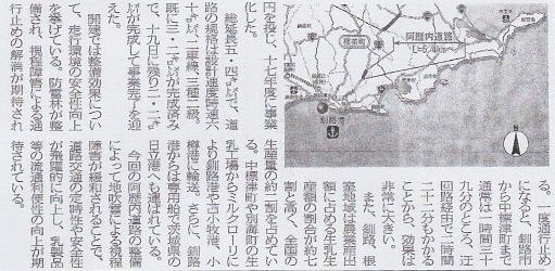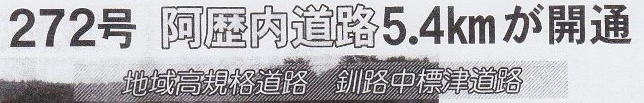 今回は、平成25年3月29日(金)の北海道通信から、阿歴内道路開通の記事をご紹介します。