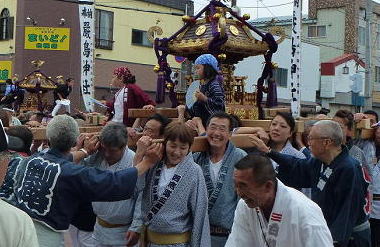 今年も、全道20の会から担ぎ手さん達が集まったそうです。揃いのはっぴでかけ声も凜々しく、楽しそうなのがいいですね。