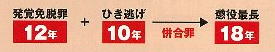 「発覚免脱罪」と「ひき逃げ(救護義務違反)」は同時に成立することが想定され、併合罪により、「18年以下の懲役」となります。