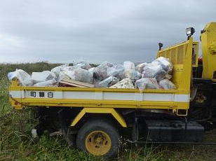 白糠町役場のトラックでゴミを集めます。役場の職員の方は、この後、ゴミの選別作業もなさるのだとか。