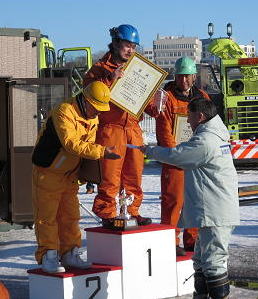 参加した8名のオペレーターさんの技能は、いずれも素晴らしく、全員が全ての項目で僅差のため、このブレード操作による残った雪の高さを厳密に計測して順位を付けるなど、審査員の方も苦労なさったようです。
