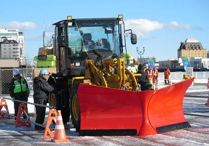 2月7日(土)に、釧路市で開かれた『第2回釧根除雪車チャンピオンシップ』で使用されていました。常日頃は、大型の除雪車に乗って作業しているオペレーターの皆さんですが、この日は、この除雪ドーザーを操作して、除雪の腕前を競おうってことですね。