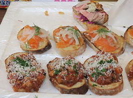→こちらは、何ともワインに合いそう。サーモンやタコが具材として使用されています。