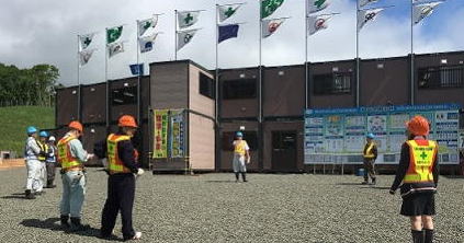 弊社の供給者さんとも一緒に臨んだのですが、この現場は、例えば7月7日(木)の北海道建設新聞の記事にもある通り、弊社ばかりでなく色々なところから安全パトロールに入っていますので、安全に対してこれまでにも様々な改善が施されており、この日の指摘事項も3件でした。