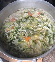 私は、今年も豚汁を作るお手伝いをしました。大きな鍋2個で約150人分は あったでしょうか。美味しいと言って下さったので、嬉しかったです。
