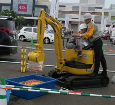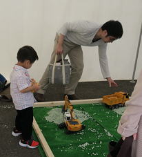 他にも、ラジコンロータリー車を操作して除雪作業を体験してみたり、ミニバックホウに乗って実際に動かしてみたり、男の子、女の子を問わず人気でした。