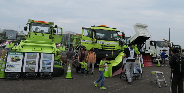 釧路管内の建設業者さんが、みんなで力を合わせて設営、展示、運営を自ら実施して下さっています。もちろん協賛して下さる建機会社やリース会社、製作所の皆さんの尽力があるのは言うまでもありません。