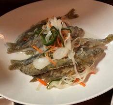写真は、ししゃもの天ぷら、 ししゃもマリネ、ししゃも汁です。