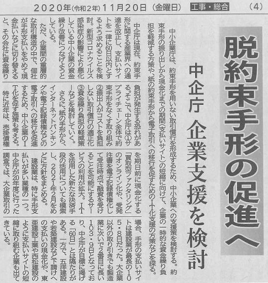 今回は、北海道建設新聞の11月20日(金)の記事をご紹介します。