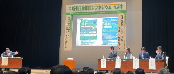 宮田昌利さまの基調講演の後は、4名のパネリストをお迎えしてのパネルディスカッションへと続きます。それぞれのお立場から、道東道延伸の必要性と今後の活性化について、ご意見を伺いました。