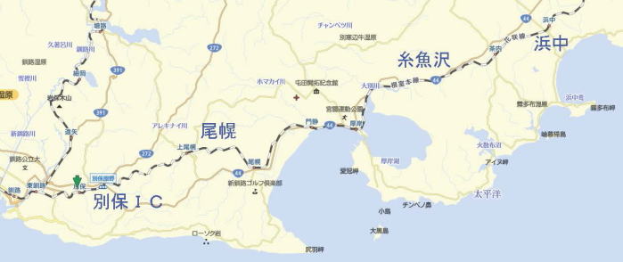 冒頭の 「道東自動車道シンポジウムin浜中」 の項にもあるように、現在は、札幌から釧路市の別保ICまでつながった高規格道路の、さらなる東への延伸が望まれているところです。具体的には、別保IC