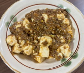 そして、もう一つご紹介したいのが、「ジャンジャン食べれる!!旨辛胡麻坦々醤」 です。こちらを製造しているのは株式会社 北海道えぞ鹿ファクトリーさんです。社名にもあるように、こちらの商品には鹿肉が使用されていますが、鹿肉独特の風味が気にならないくらいパンチのある味付けになっています。(辛いのが苦手な方は少量ずつ食べてみるといいかもしれません。)店員さんに餃子にかけて食べるとおいしいと聞いたので、早速餃子にのっけてみました(写真左)。パウチになっていたときにはわかりませんでしたが、すごく量があります。モリモリになってしまいました…。さすがに全部食べきることができなかったので、翌日長ネギと豆腐を加えて麻婆豆腐にアレンジしてみました(写真右)。こちらの商品も生じゃがバターパン同様、恋問館内の恋問市場にて販売されています。えぞ鹿肉を使用した和風ミートボールやカレーも一緒に陳列されていましたので、今度はそちらも試してみたいと思います。白糠町にお立ち寄りの際には、「道の駅しらぬか恋問館」