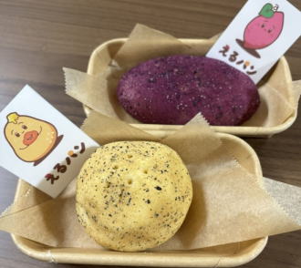 まずは、「生じゃがバターパン」 です。写真を見てわかるように、見た目がジャガイモそっくりで、とてもインパクトがありますよね。このパンには、北海道産のバターと、白糠町で生産されたジャガイモが使用されています。また、生地は小麦粉ではなく米粉を使用しているのでモチモチとした食感で、グルテンフリーというのも魅力です。味はまさにじゃがバターで、少ししょっぱめの惣菜パンという感じです。こちらの商品は、恋問館内の恋問市場にて冷凍の状態で販売されており、賞味期限を気にする必要がないので まとめて購入することもできちゃいます。なお、この生じゃがバターパンの他にも、サツマイモのような見た目の 「生さつまパン」 も一緒に販売されていました。こちらはサツマイモの甘みをダイレクトに感じられる甘味系のパンでしたよ~。興味のある方はぜひお試しください。