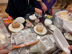 一時的に生活をする場所になります。食料や水など備蓄品がありますが数に限りがあるので、困っている人がいたら避難された方たちで協力し助け合って下さい。行政だけに頼らず、皆で避難所、避難場所のスタッフとして動いて下さい。」 とのことでした。お話の後は、持ち寄ったレトルト食品の防災食と、学生が準備してくれたアルファ米の試食をしました。思ったよりアルファ米が美味しかったです。