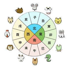 さらに、時刻だけでなく、方角も同様に十二支で表されていました。方角では、北が 「子」、東が 「卯」、南が 「午」、西が 「酉」です。北極と南極を結ぶ線を 「子午線」 と言いますが、この単語も北(子)と南(午)に由来してるそうです。
