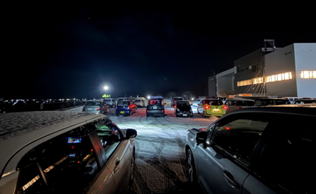 ← 白糠町立庶路学園の駐車スペースにて避難中の様子。