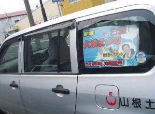 弊社の社有車にポスターを貼って走行中です。見かけたら是非いらして下さい。