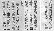 開発局において、電子入札が定着したことは、入札に携わる者としては時間や手間が節約できて、とてもありがたいことですが、工事書類については、全てを電子納品という訳にもいかないようですね。電子と紙と、それぞれに長所と短所がありますからね。