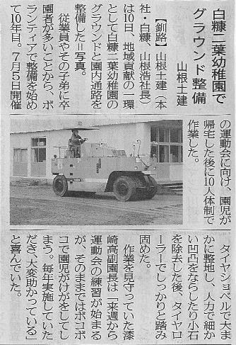 弊社では、7月5日の二葉幼稚園の運動会が、お天気になって、園児たちが元気に走り回ってくれるといいと願って、グラウンド整地をお手伝いしました。運動会で園児たちの笑顔が沢山見られるといいですね。