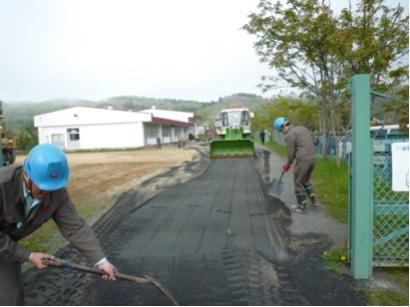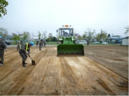弊社では、毎年白糠町内の二葉幼稚園の運動会に備えて、グラウンド整備を、お手伝いさせて頂いています。今年も6月8日(火)に、職員12名で作業しました。