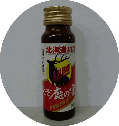 エゾシカから作られた清涼飲料水『えぞ鹿の宝』50ミリリットル。