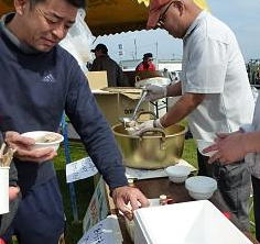 あら汁が無料で配付されていました。屋外で頂く暖かい汁物は嬉しいですね。
