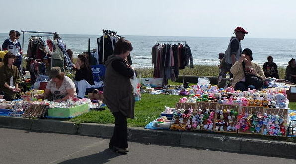見渡せば広い太平洋と、どこまでも続く青い空。古着や小物を広げるバザーの方達も、お客さんも、ゆったりとのんびりしていたようです。