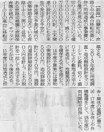 今回は、北海道建設新聞の3月5日(水)の記事から、白糠の学校事情に関する記事をご紹介します。
