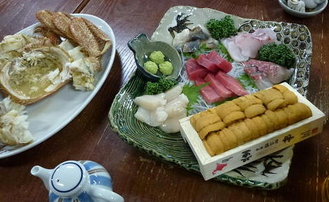 毛ガニの茹で具合も絶妙。刺身も新鮮。ウニなんて、すぐ、なくなっちゃいます。