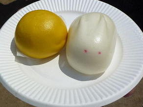 →3点セットだったのに、人気で、1点なくなってしまった蒸しまんじゅう。ウサギがかわいい。