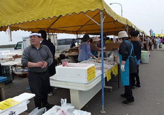 美味しいものを見つけました。 タコ、ホッキ貝入り“まんま焼き”。 その場で作ってくれるのでホッカホカ。200円と値段もお手頃で、行列ができていました。結構大きいので、みんなでビールのつまみにも丁度いい感じです。
