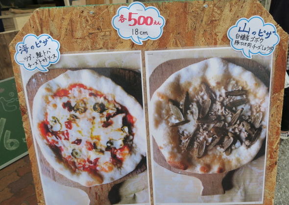 白糠町産のゴボウやツブ貝を使って作るピザ。