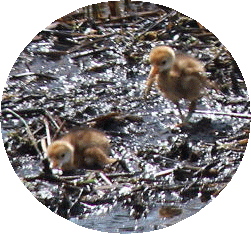 水が出ている湿地帯の中央に、おそらくヨシを折って巣を作ったのかと思うのですが、1羽ずつで暖めていました。 2ヶあった卵から、ある日1羽のヒナがかえって、翌日には2羽目のヒナもかえっていました。 丹頂って、見る時はいつもつがいで、仲良しの感じがいいなあ〜って思いますけど、ヒナをかえして育てる時も、つがいで協力するなんて、素晴らしいです。