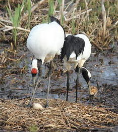 2ヶの卵が確認できます。 これは望遠レンズで撮影していますので、実際には丹頂との距離をとっています。そうっとしておくことが大事です。