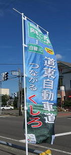 そう言えば、昨年から釧路管内のあっちこっちで、こののぼりが、はためいていましたね。白糠IC開通後、阿寒IC開通に向けて作成されたこののぼり。 よく見ると、ゆるキャラ 『つるまる』くんがいるんですよ。 お気付きでしたか? 言わずと知れた丹頂鶴をモチーフにしたゆるキャラですね。釧路湿原・阿寒・摩周観光圏協議会キャラクターらしいです。 かわいいっ。