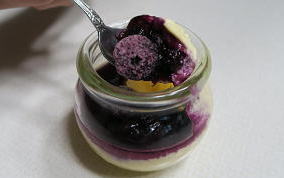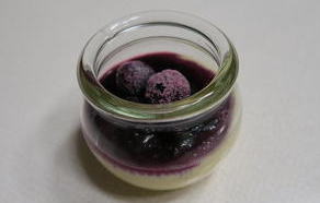 今回ご紹介するカタラーナは、プリンの上にブルーベリーとブルーベリーソースが乗っていて、冷凍庫で冷やしたものを、食する少し前に冷凍庫から冷蔵庫に移して頂くというスタイルです。