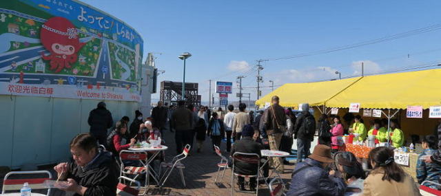 ツブやタコなど、食欲をそそる香りに誘われて、お天気にも恵まれ、会場は大勢のお客さまで賑わっていました。