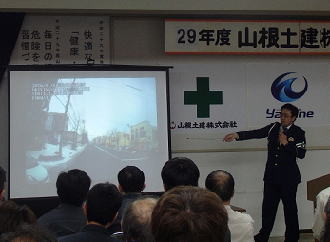 今回の安全講話は、SOMPOリスケアマネジメント鰍フBCMコンサルティング事業部 上席コンサルタント 藤枝暁生様による 『釧路の自然災害とその備え』 についてのお話しでした。