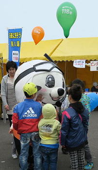 海上保安庁のマスコット、『うみまるくん』 は子供達に囲まれて大人気状態でした。