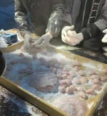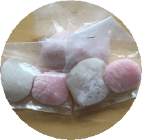 これから初詣にいらっしゃる皆さんに、無料でお配りする紅白のお餅づくりの手伝いです。