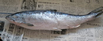 大漁まつりの会場で、ずらりと並んだお魚を前に、私もサクラマスを購入しました。