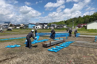弊社では、大漁まつり開催前日に、駐車場に設置するバリケードの準備をお手伝いしました。