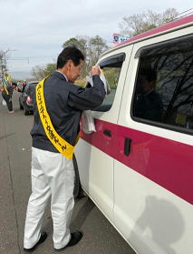 そんな中、当社では5月22日(水)に安全衛生大会を開催しました。その一環として、毎年白糠町の馬主来(ぱしくる)にて街頭啓発活動をし、ドライバーの方に安全運転へのご協力をお願いしています。