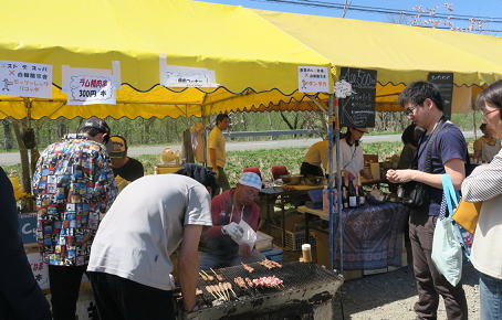 とり串や つくね串、炭で焼いたサーロインステーキ、義経鍋など、食べるものには事欠きません。『つつじ祭り』 の主役、つつじがあまり見当たらないのは、皆さん気にしないことにして、この日は、北海道の夏の始まりと食を、大いに楽しんだのでした。 (※百)