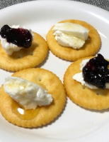 そのまま食べても美味しいのですが、私はクラッカーの上に乗せて更にブルーベリージャムとハチミツをかけて頂きました。